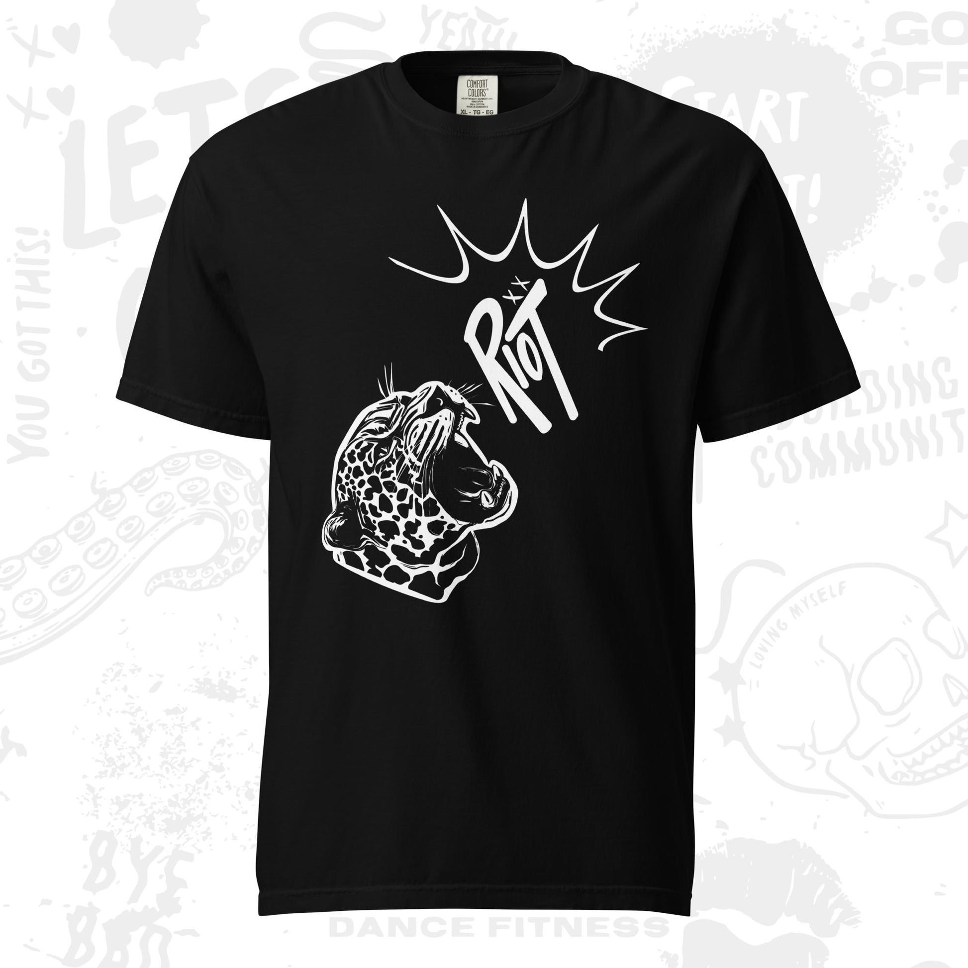 Unleash your wild side with this fierce cheetah mid-roar and the word "Riot" splashed across the front, this shirt is for those who break the mold and laugh in the face of ordinary. Wear it loud, wear it proud—because who said fashion can't be a little rebellious?