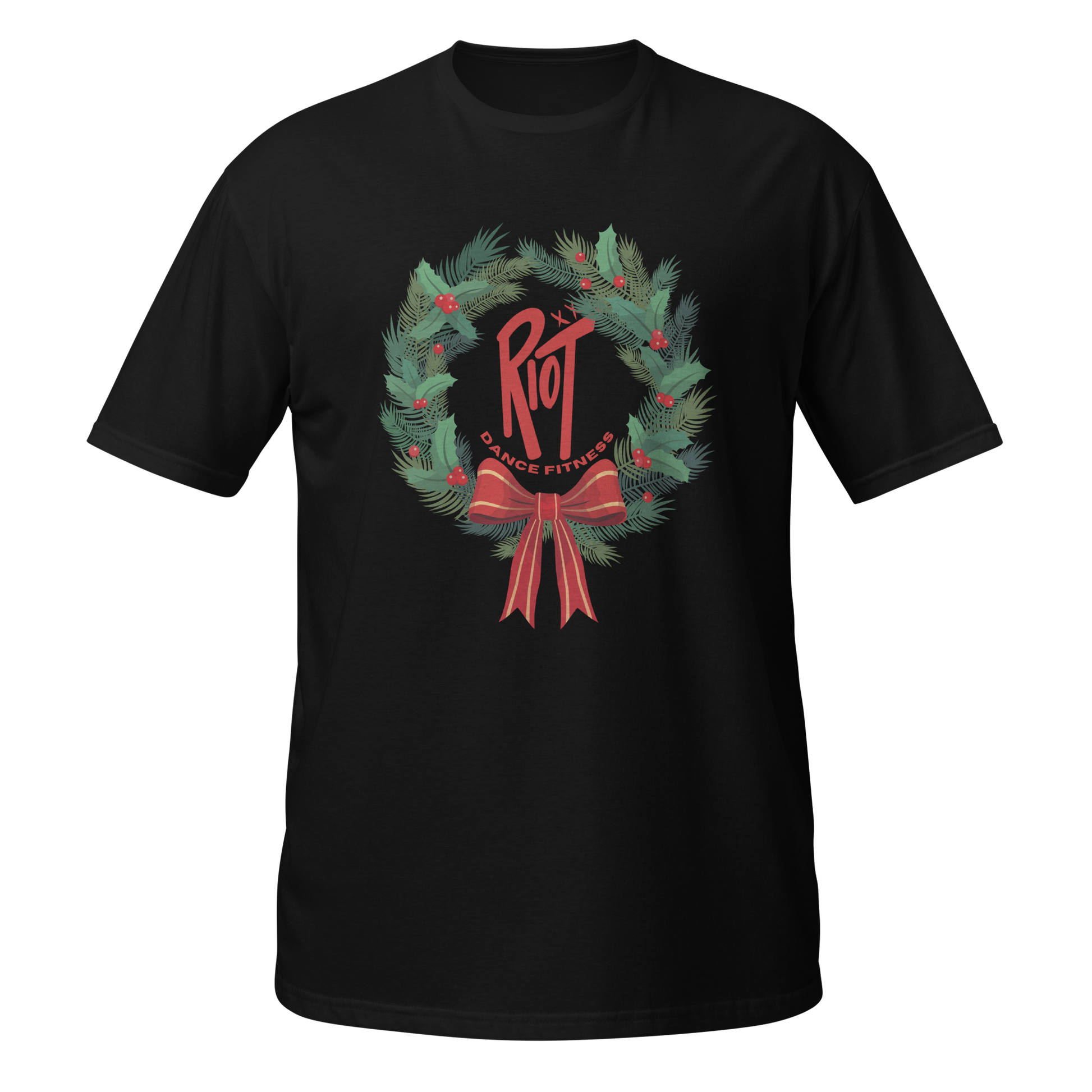 Holiday cheer but make it Riot. This limited edition Christmas Wreath Tee features our signature logo wrapped in a bold festive wreath with a bright red bow. It is the perfect pairing for the Christmas pajama pants or a stand alone statement for anyone ready to dance, sweat, and sleigh.